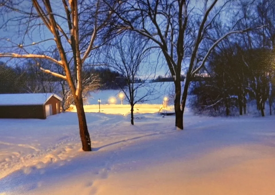 The ice rink behind my childhood house sat a few hundred feet to the south, right at the base of our sledding hill.